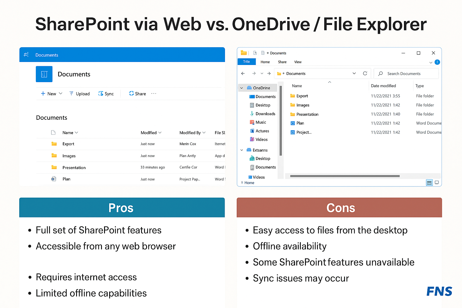 | Feature | SharePoint Web Interface | OneDrive/File Explorer |